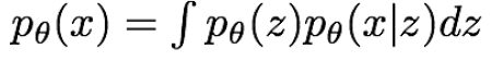 pθ(x): sampling한 z로 space 상의 확률분포를 생성하고, x를 이 분포로부터 sampling한다.