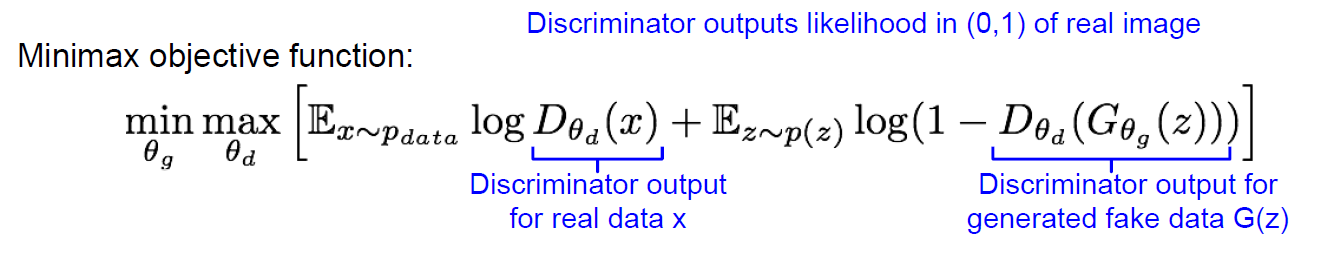 generator와 discriminator 간의 minimax 게임을 한다고 생각하자.