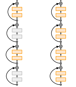 stochastic depth: train time에 네트워크 레이어를 랜덤 drop. 일부만 사용해서 학습. test에서는 전체 다 이용.