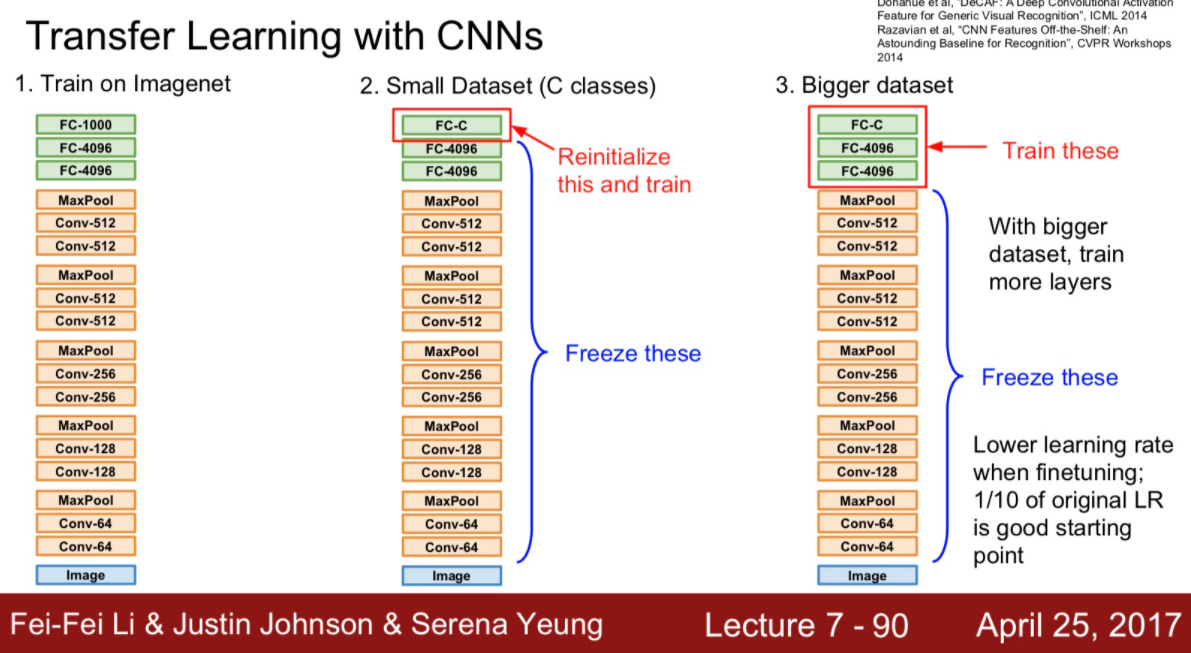 cnn으로 imageNet같은 아주 큰 데이터셋으로 한 번 학습시킨 모델을 우리가 가진 작은 데이터셋에 적용시킴.
