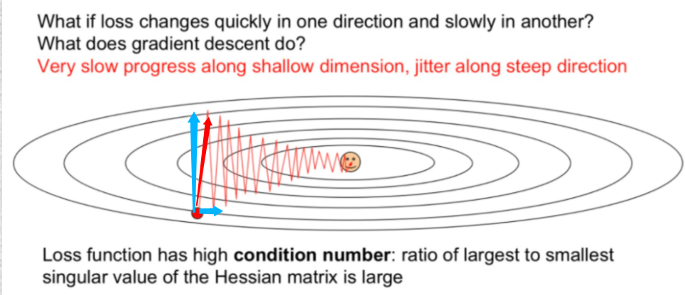 가중치가 최적화하려는 방향으로 너무 빠르게 이동하다가, 원하는 최적의 지점을 지나치는 경우가 있음.