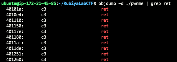 ROPgadget --binary ./pwnme --only "ret"