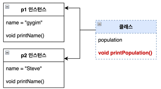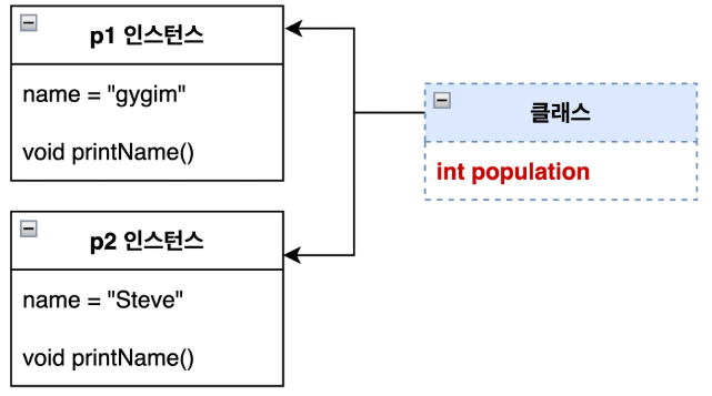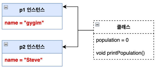 System.out.println("현재 인구 수: " + population); // ✅ 클래스 메서드