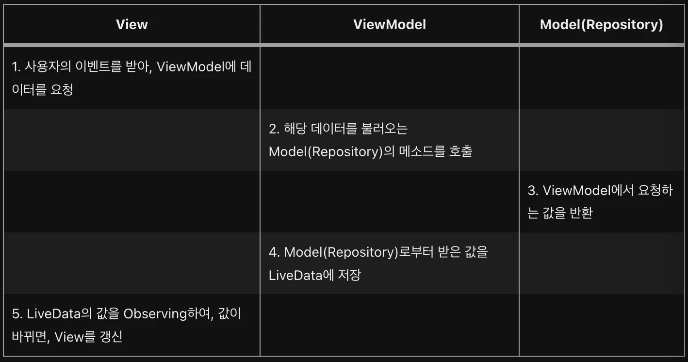 - 다른 디자인 패턴에 비해 설계가 복잡(ViewModel 설계가 복잡하다,,,)