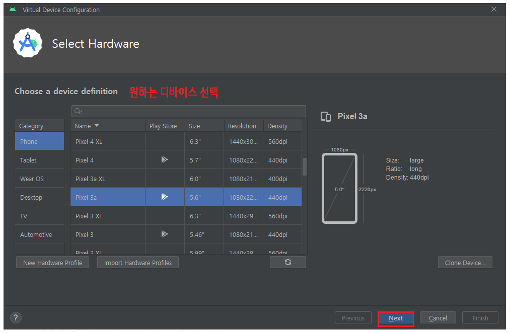 Android Studio 에서 새로운 프로젝트를 생성하고 가상 에뮬레이터를 설치 후 실행하는 방법에 대해 알아보자.