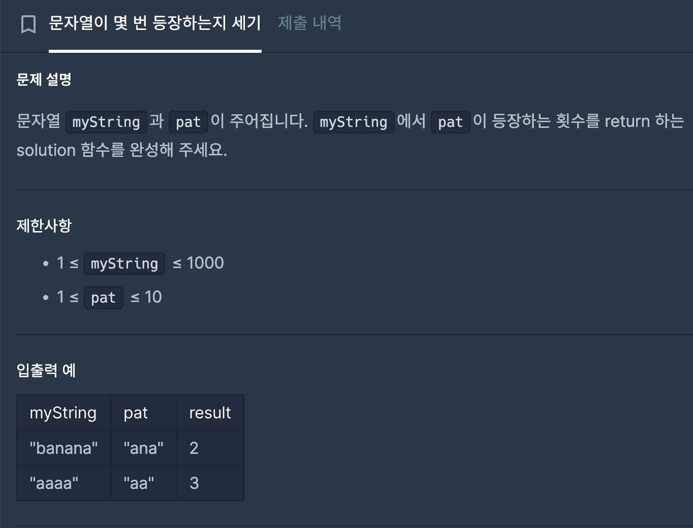 count()는 부분 문자열을 찾으면, 그 문자열의 길이만큼 건너뛴 후 다음 탐색을 진행한다.