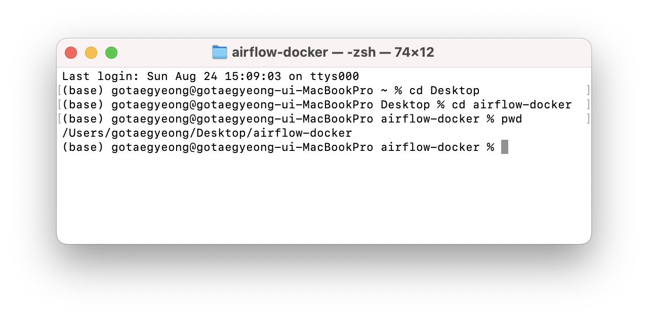 원하는 위치에 airflow-docker 폴더를 만들고 이동함.