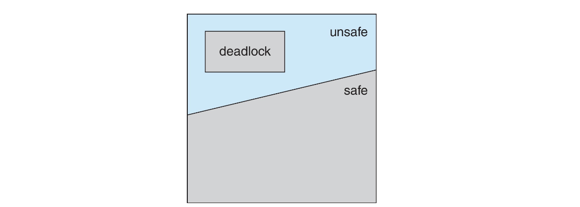 unsafe state에 있는 경우 → Deadlock 가능성 있음- Deadlock avoidance 알고리즘을 통해 시스템이 unsafe state에 들어가지 않도록 보장함