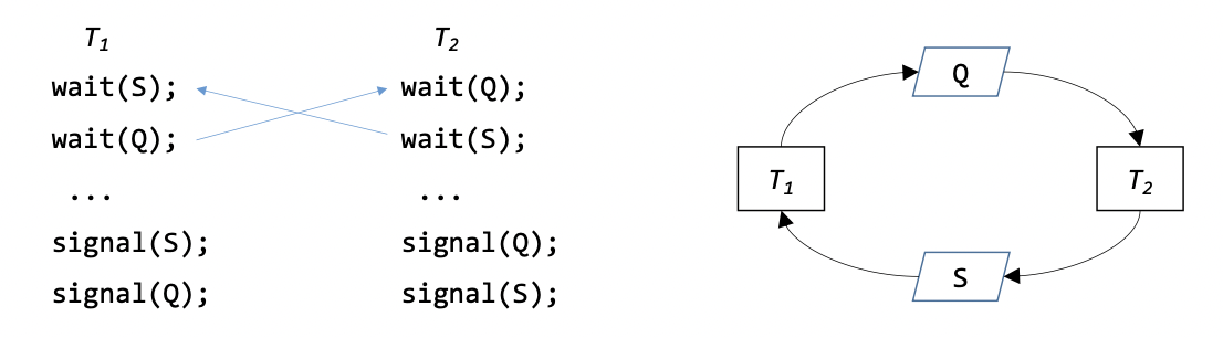- 따라서, 두 스레드 모두 signal 연산을 수행할 수 없게 되어 deadlock 상태에 빠집니다.