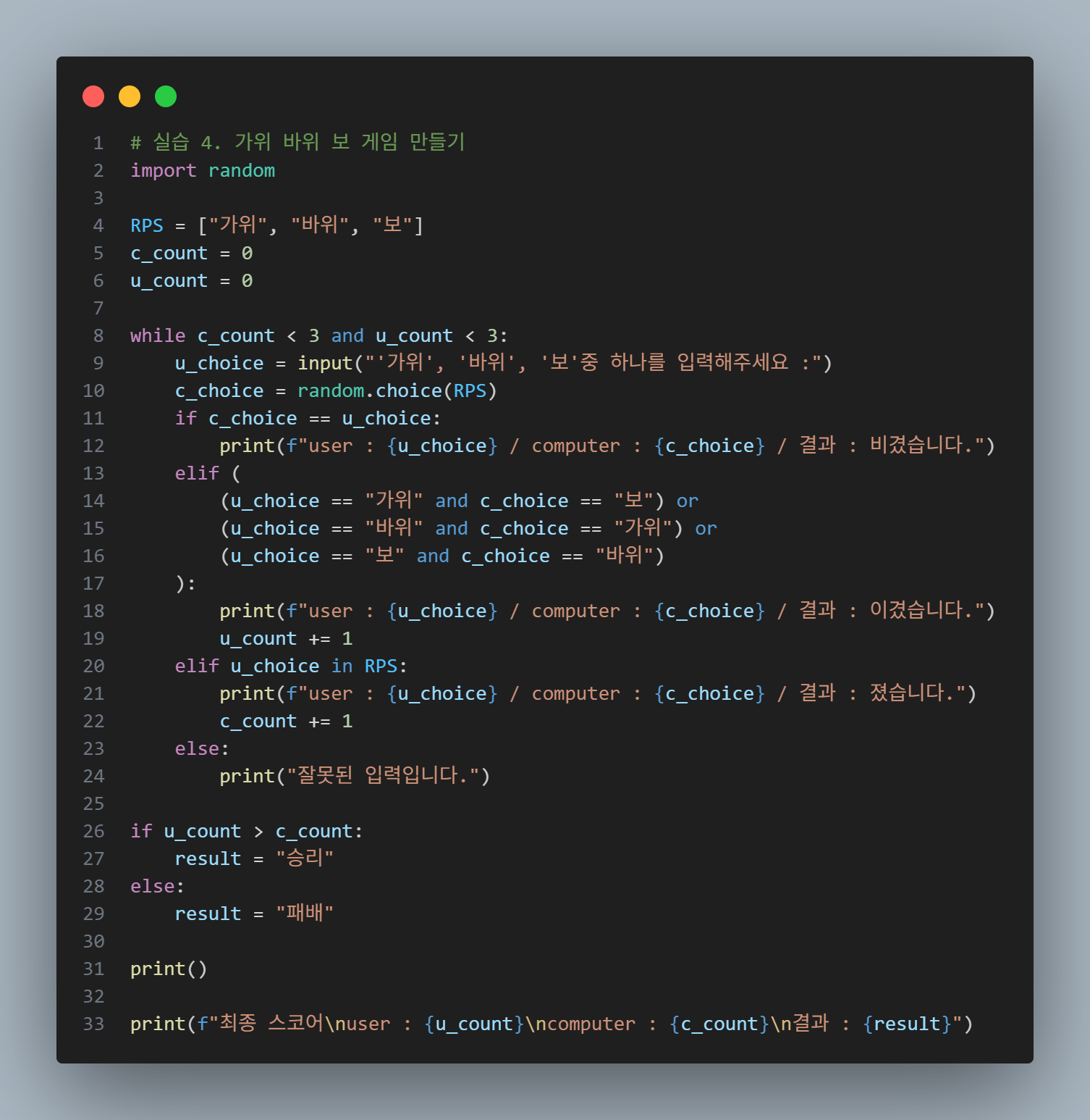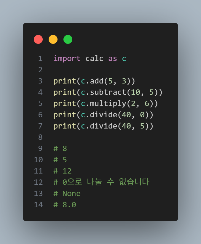 모듈과 패키지를 직접 만들어 사용하는 방법도 배웠는데, 앞으로 코드가 점점 복잡해질 때 정말 유용할 것 같다는 생각이 들었다. 다만 평소에도 변수명을 정하는 데 어려움을 겪고 있는데, 모듈을 사용할 때는 이름 충돌 문제까지 고려해야 해서 더욱 신경 써야겠다
