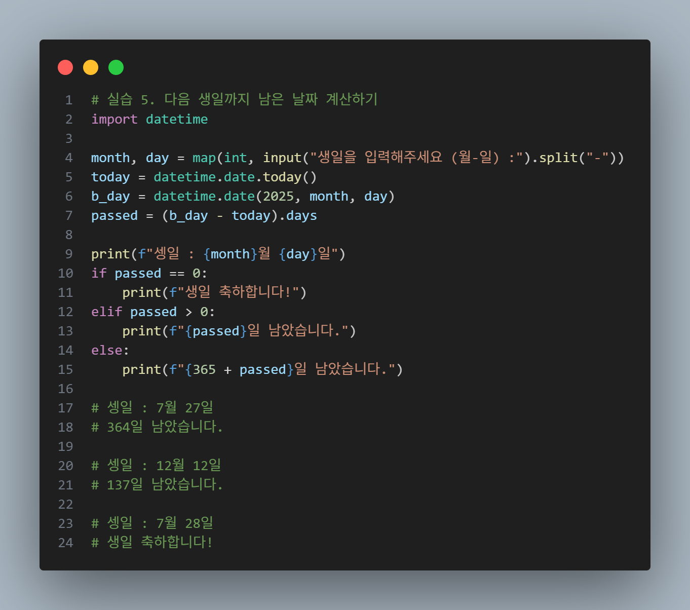 datetime.date.today().day # 28
