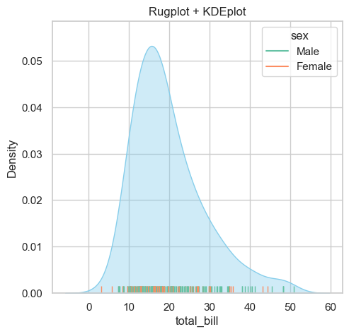plt.title("Rugplot + KDEplot")