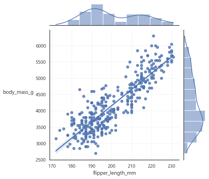 jointplot(kind="reg")palette = sns.color_palette("pastel6")