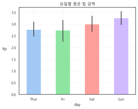 plt.title("요일별 평균 팁 금액")