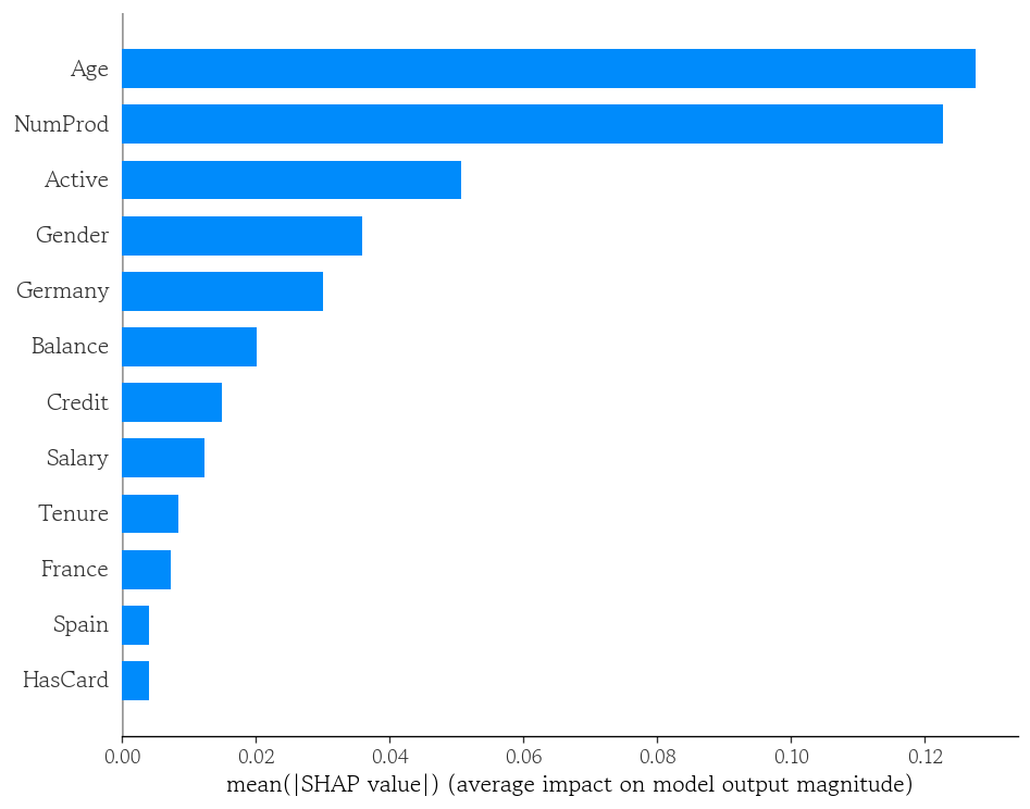 'NumProd', 'HasCard', 'Active', 'Salary', 'Exited']