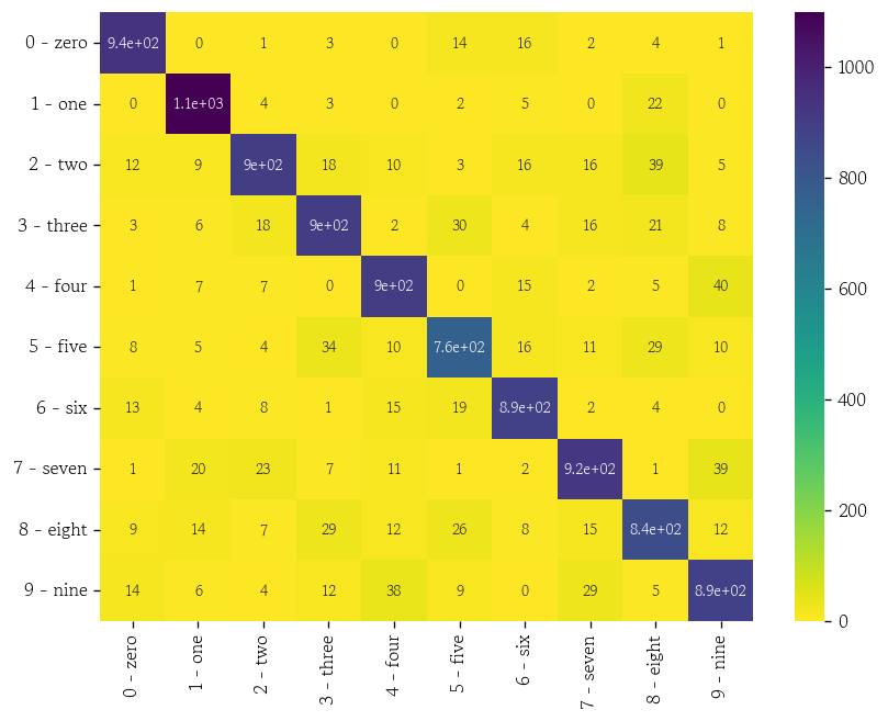 sns.heatmap(data=cfmx, cmap='viridis_r', annot=True, annot_kws={'size': 8})