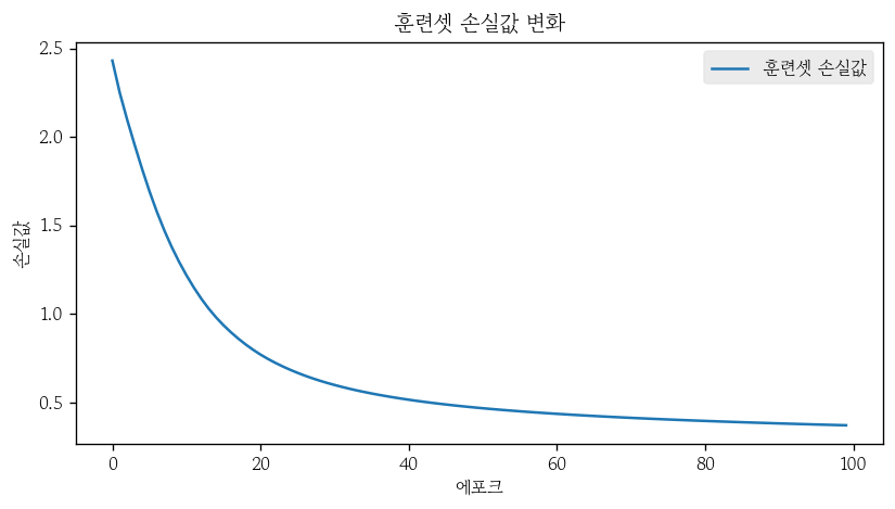 plt.plot(train_losses, label='훈련셋 손실값')