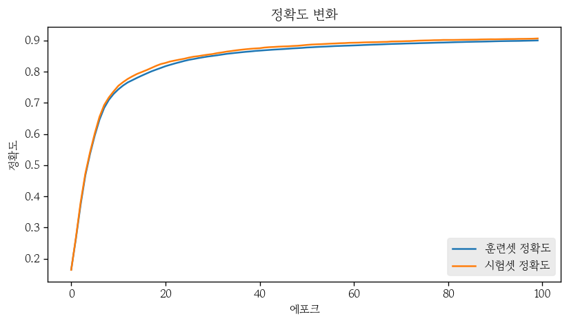 plt.title('정확도 변화')