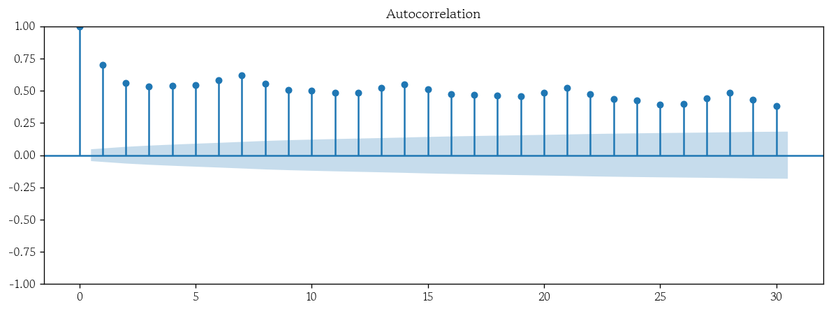 plot_acf(x=df, lags=30);