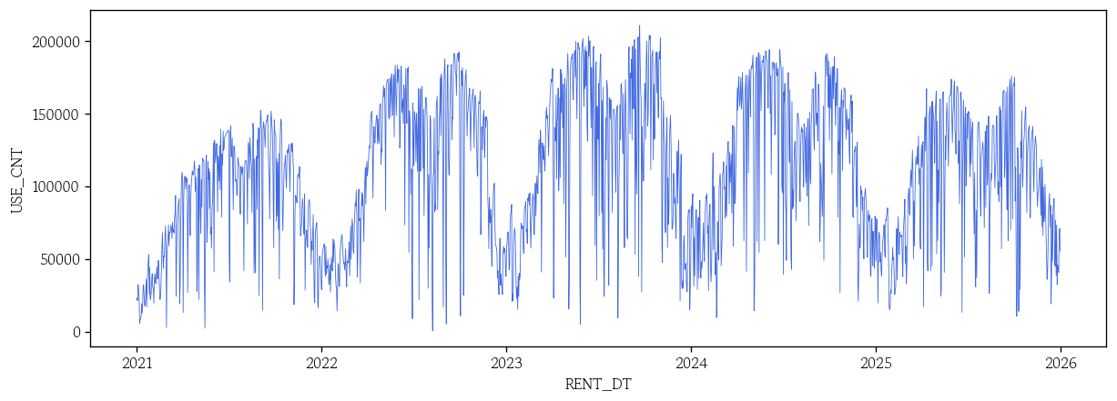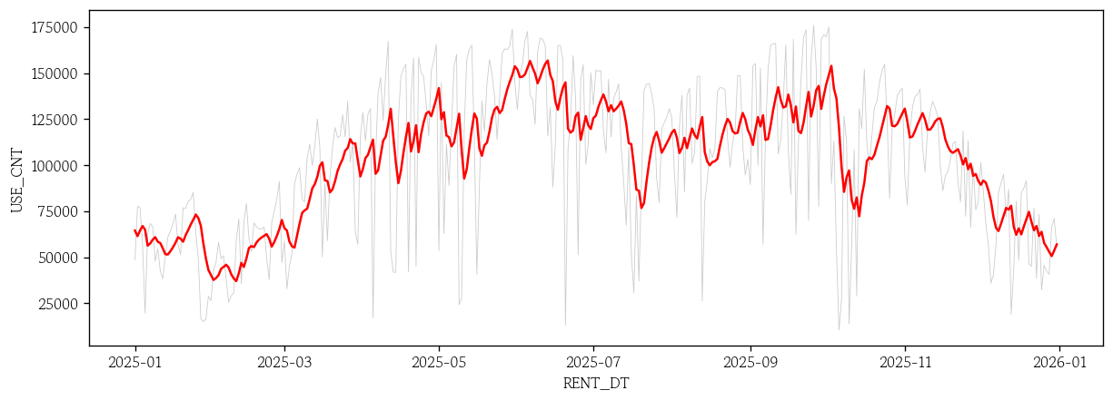sns.lineplot(x=test.index, y=test['USE_CNT'], color='0.8', linewidth=0.5)