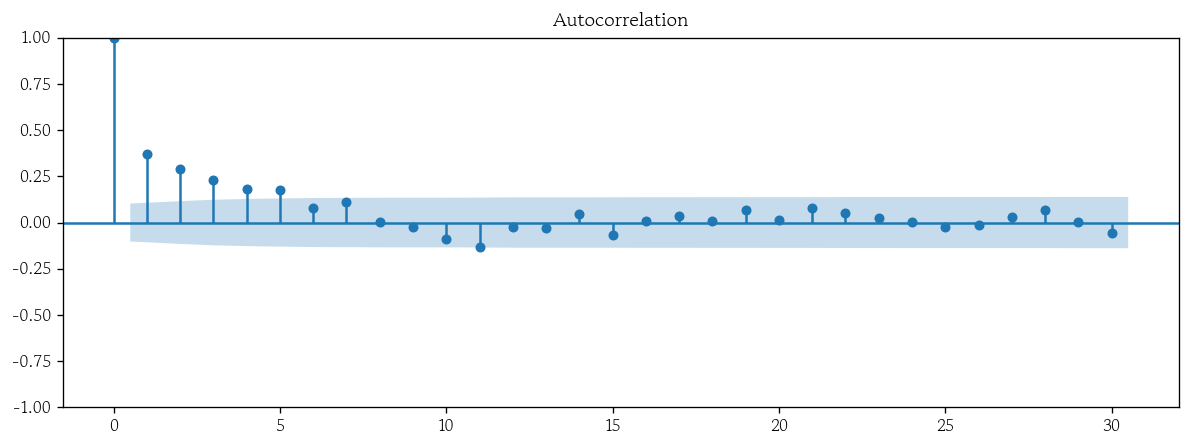 plot_acf(x=pp_exog_resid, lags=30);