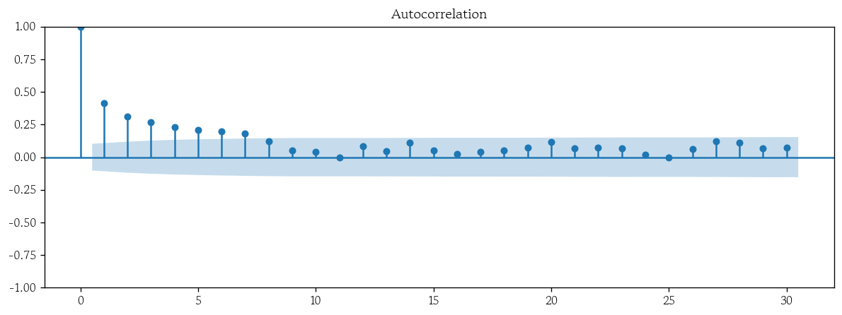 plot_acf(x=pp_basic_resid, lags=30);