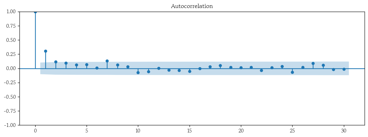 plot_acf(x=xgb_resid, lags=30);