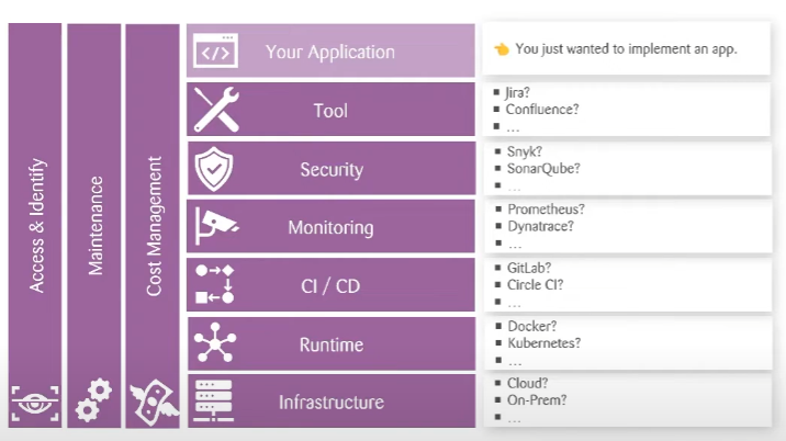 즉, 운영하기 위하여 이러한 기술들을 모두 적용하고 운영해야하며, 인지 부하 (Cognitive Load)가 매우 높다는 것을 알 수 있다.