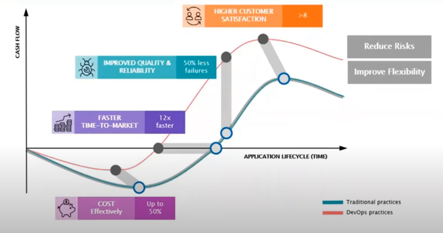 DevSecOps를 도입하여 궁극적으로 자동화, 모니터링, 보안 적용을 통해 고객에게 더 나은 성과를 제공하고 비즈니스 가치를 향상시킬 수 있다.