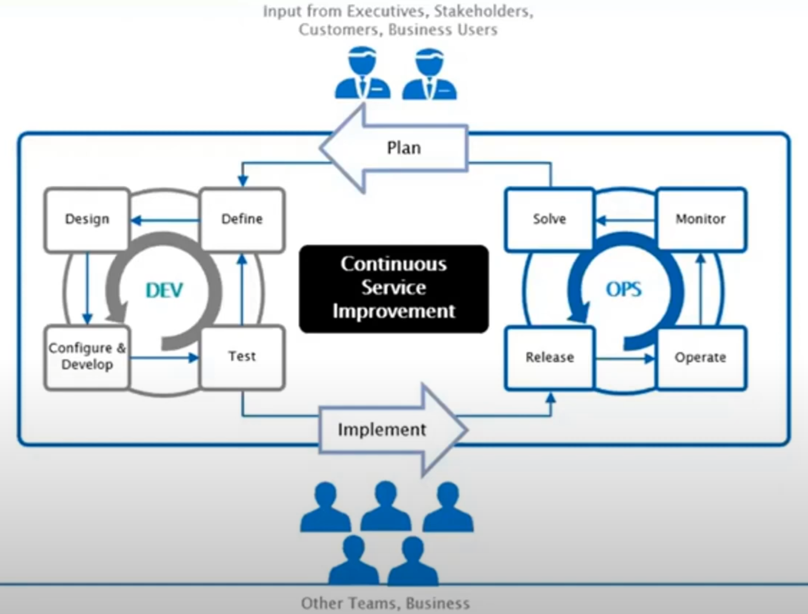 지속적인 서비스 개선 (Continuous Service Improvement): 전체 '소프트웨어 개발 수명주기 (SDLC)' 전체에 적용되는 개념으로, 현재에 안주하지 않고 끊임없이 더 효율적인 시스템을 만들려는 노력