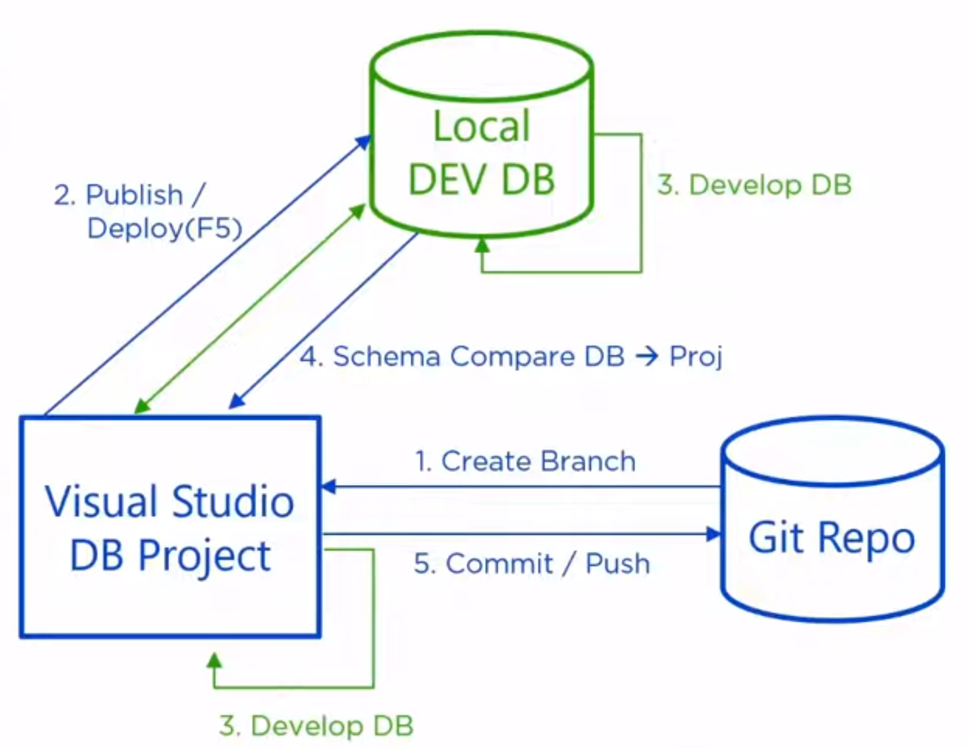 이론적으로 정립된 Database as Code를 실현하기 위해 개발자는 로컬 환경에서 SSDT를 활용하여 Work Flow를 따른다.