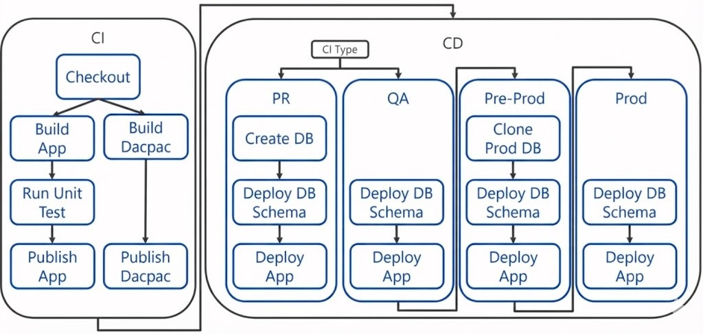 소스 제어 (Git), 빌드 타임 검증, 아티팩트 (DACPAC) 생성을 통해 DB 변경 사항도 애플리케이션과 동일한 생명 주기를 가져야 한다.