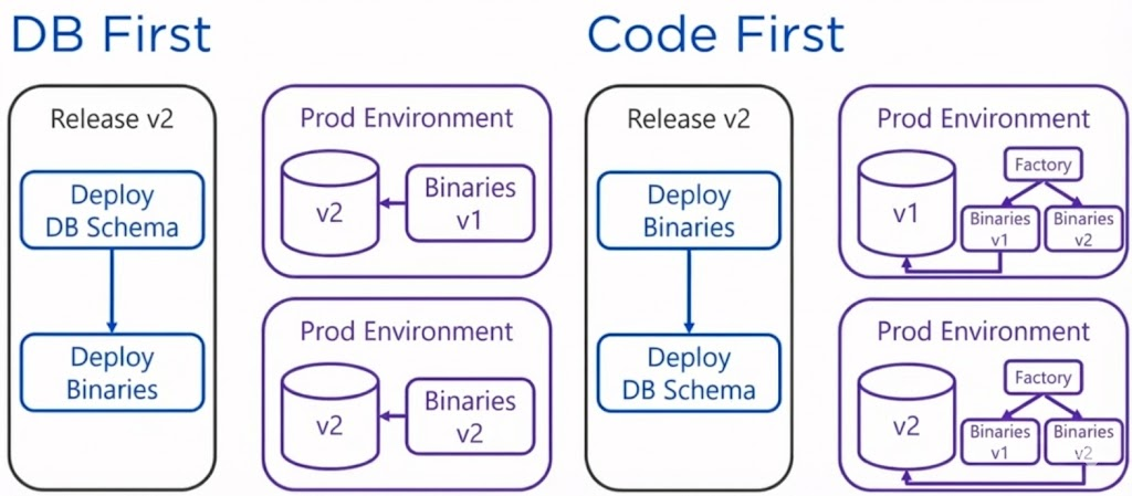 애플리케이션을 먼저 배포하고, 내부 Factory Pattern이나 Feature Flag를 통해 DB 버전에 따라 작동 로직을 다르게 가져가는 방식