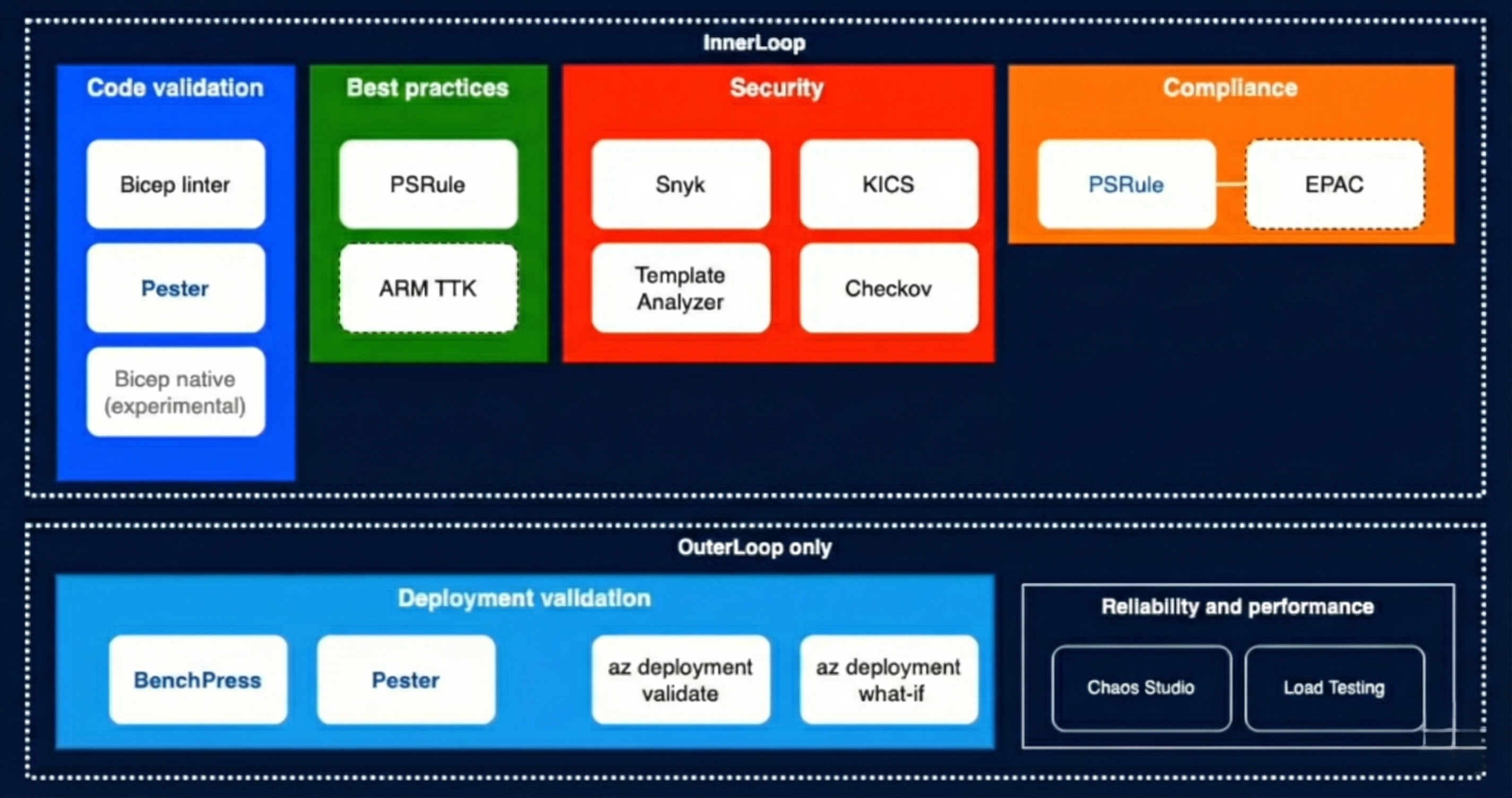 ARM TTK: 과거 ARM 템플릿 시절 도구이며, 현재 Bicep 팀은 이 규칙들을 네이티브 린터로 통합하고 있다.