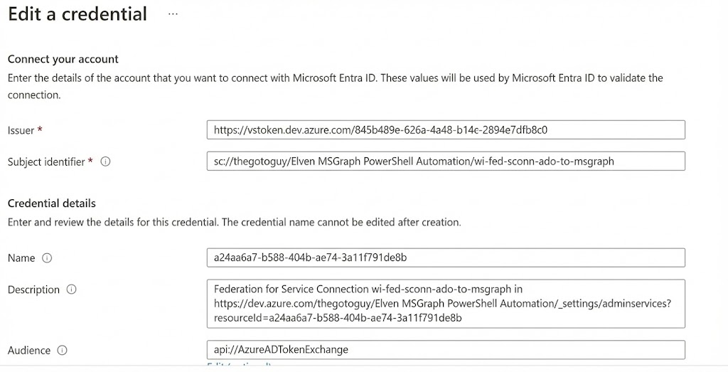 해당 설정 덕분에 Azure DevOps의 특정 서비스 연결이 요청을 보낼 때, Entra ID는 이를 신뢰할 수 있는 요청으로 식별하게 된다.