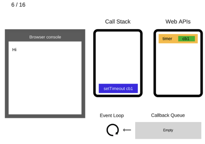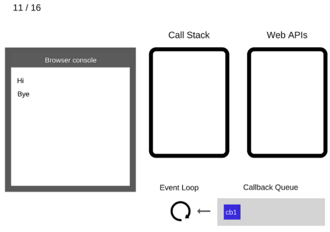 setTimeout( function cb1() {...} ) 이 Web Api를 호출하면 실행이 된 것이다. 그렇기 때문에 Call Stack에서 사라진다.