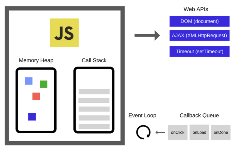 기존 그림에서 오른쪽에 Web APIs와 Callback Queue 그리고 Event Loop라는 것들이 추가됐다.