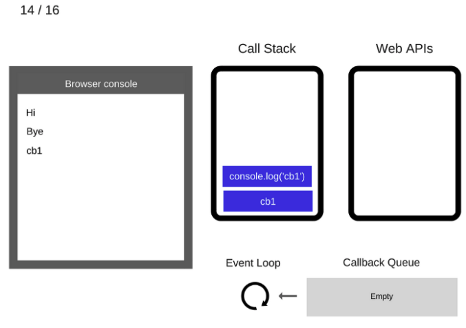 마지막으로 콜백함수 cb1의 실행이 완료되었으므로 cb1 또한 Call Stack에서 제거된다.