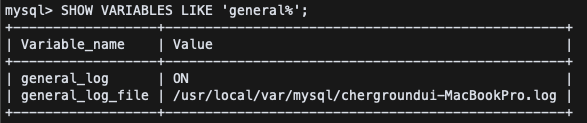 만약 general_log가 false라면 SET GLOBAL general_log = ON;을 사용해 ON으로 바꿔준다.