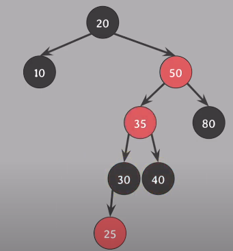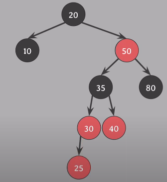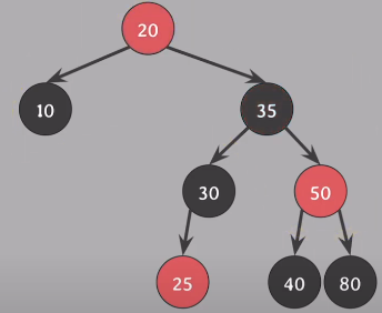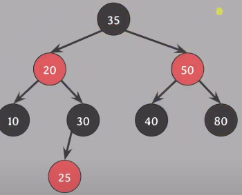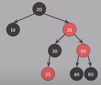 35의 왼쪽 자식은 20이 되고, 20의 오른쪽 자식은 30이 됨