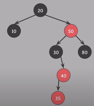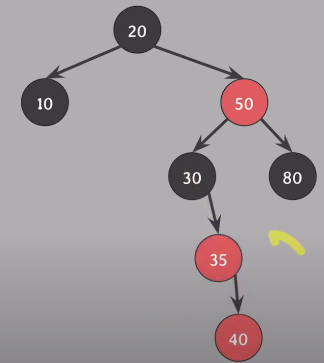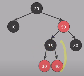 35의 오른쪽 자식은 50이 되고, 40은 50의 왼쪽 자식으로 가게 됨