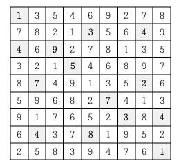 위의 예의 경우, 첫째 줄에는 1을 제외한 나머지 2부터 9까지의 숫자들이 이미 나타나 있으므로 첫째 줄 빈칸에는 1이 들어가야 한다.