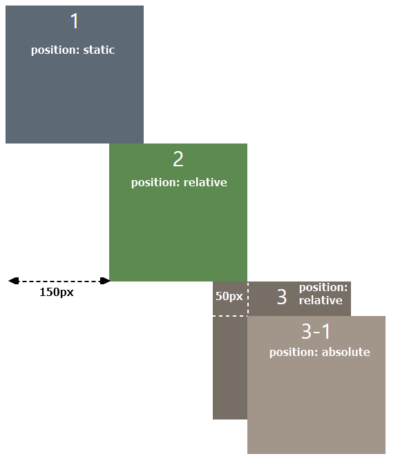 즉 자연히 와야할 위치 + left: 150px이 적용된 위치이다.
