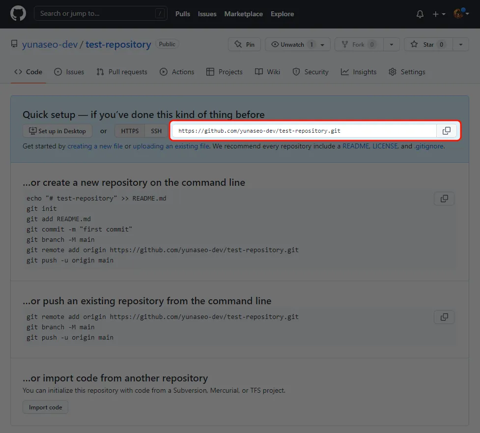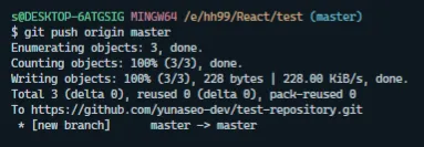 즉 로컬 저장소의 원격 저장소를 위에서 입력한 원격 저장소로 지정하여 push 하는 것이다.