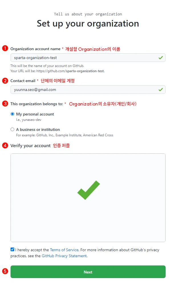 3) 필수 항목을 순서대로 작성하고, Next를 눌러 진행해 주세요.