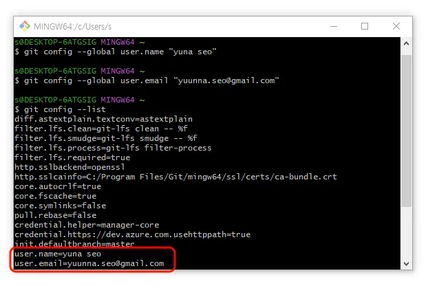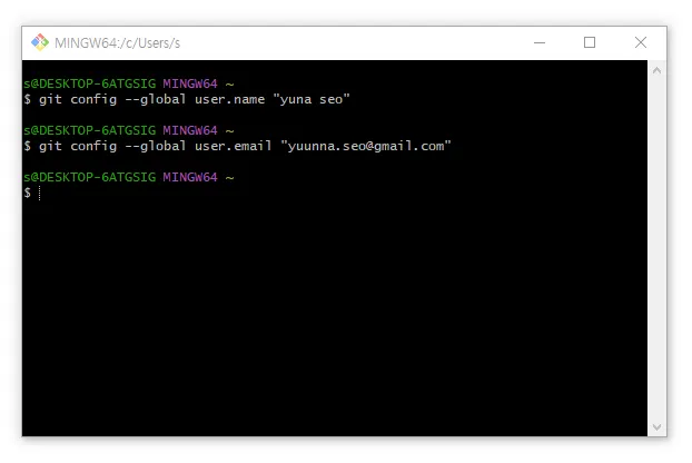 이것을 통해 컴퓨터에서 git 프로그램을 사용하는 사용자을 등록한 것이다.