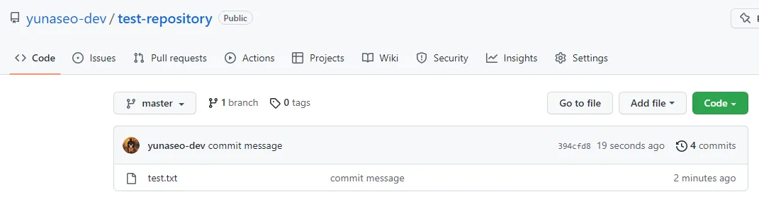성공적으로 commit 내역이 업로드된 것을 확인할 수 있습니다.