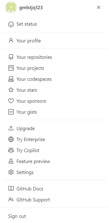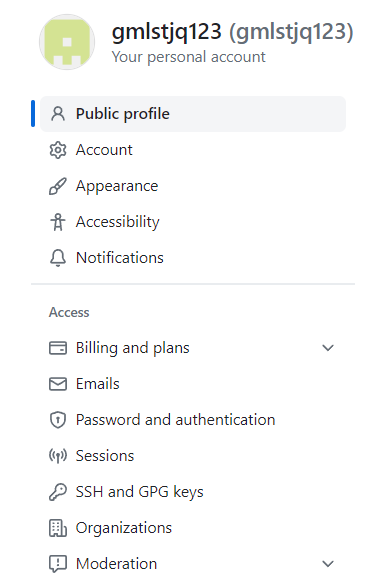 repository는 public과 private이 있다. repository 목록에서 바로 보이기 때문에 github를 잘 알지 못하는 사람도 쉽게 구분이 가능하다.