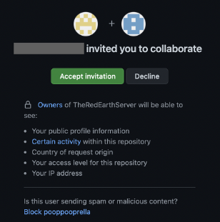 ⑥ Accept invitation 버튼을 클릭하면 해당 저장소에 접근할 수 있는 권한이 생긴다.
