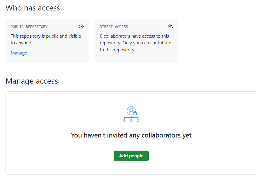 ② 해당 Repository의 Settings 메뉴로 들어가면 좌측메뉴 상단의 Access > Collaborators를 클릭한다.